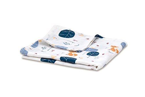 Muslin Swaddle Blankets for Baby Boys and GirlsEco-friendly Soft Bamboo and CottonFoxWhite/BlueSoft Lightweight Breathable Large 47Cute PatternOne Piece [並行輸入品]