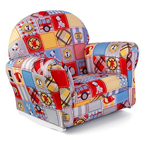 KidKraft Upholstered Rocker with Slip Cover Toy, Firefighter Patchwork [並行輸入品]
