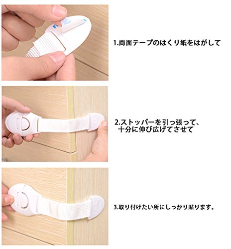 - 【お願い】赤ちゃんの目の前でロックを解除するのは極力避けて下さい。赤ちゃんの知能は日々進化致します。ワンタッチ設計の為、絶対に開けれない商品ではありません。危険な場所やよほど触られたくない部分には、2個以上取り付ける事をお勧めいたします