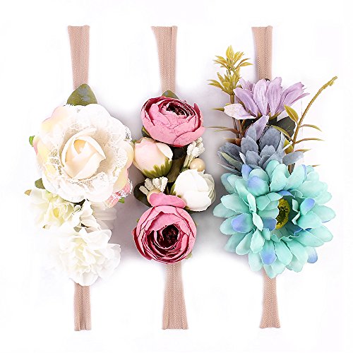 Pro-nicee ベビー ガール ベビー ヘアバンド フラワー カチューシャ 花輪 髪飾り ヘアアクセサリー 3点セット 宮参り お祝い 結婚式 撮影