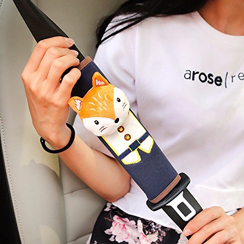 シートベルトカバー クッション コットン シートベルトパッド キッズ シートベルト枕 クッション パッド カバー かわいい 子供 ドライブ 低反発ウレタン 取り付け簡単 軽普通車用 1個入り (キツネ)