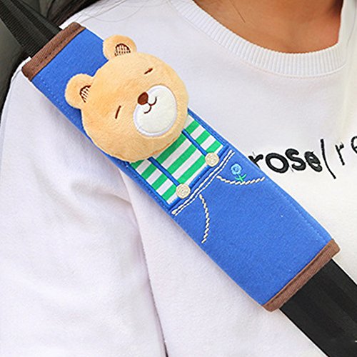 シートベルトカバー クッション コットン シートベルトパッド キッズ シートベルト枕 クッション パッド カバー かわいい 子供 ドライブ 低反発ウレタン 取り付け簡単 軽普通車用 1個入り (クマ)