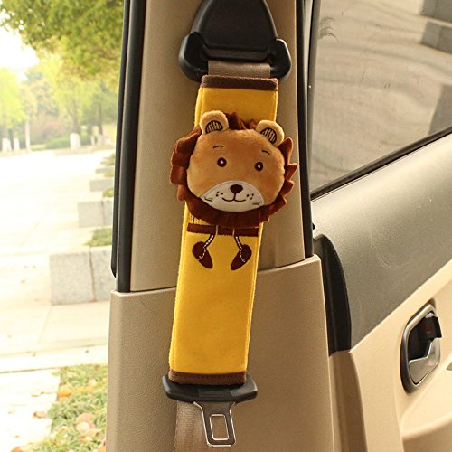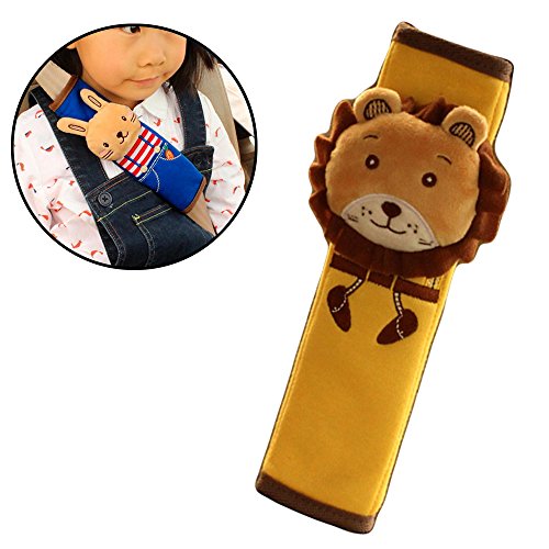 シートベルトカバー クッション コットン シートベルトパッド キッズ シートベルト枕 クッション パッド カバー かわいい 子供 ドライブ 低反発ウレタン 取り付け簡単 軽普通車用 1個入り (ライオン)