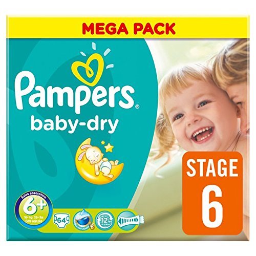 - Pampers Baby Dry Size 6+ (17+kg) Mega Box Extra Large Plus x 62 per pack