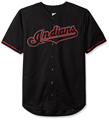 MLB Cleveland IndiansメンズShort SleevedテクスチャレプリカジャージーPopアップリケ、4 x /トール、ブラック