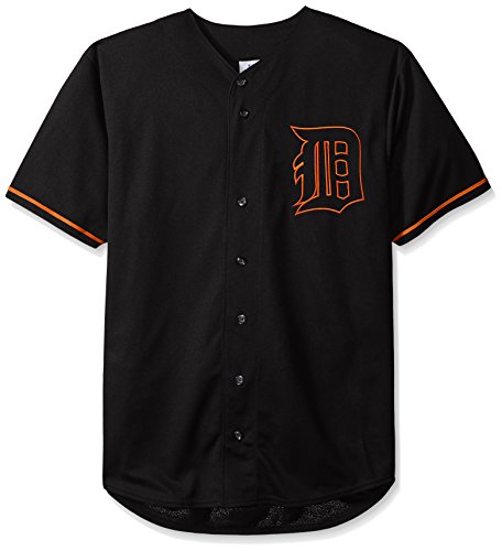 MLB Detroit TigersメンズShort SleevedテクスチャレプリカジャージーPopアップリケ、3 x、ブラック