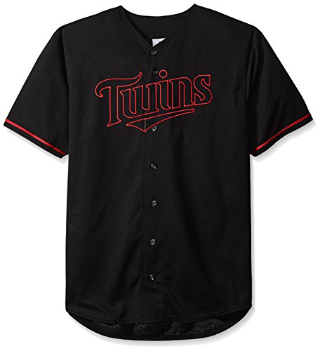 MLB Minnesota TwinsメンズShort SleevedテクスチャレプリカジャージーPopアップリケ、2 x /トール、ブラック
