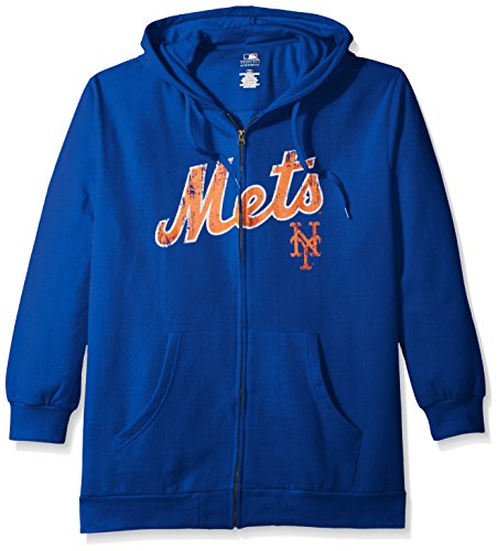 MLBニューヨークメッツWomen 's Team Full Zip Fleece Hoodie with Distress Word Mark on Chest、3 x、ロイヤル