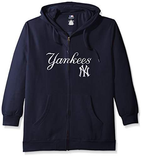 MLBニューヨーク・ヤンキースWomen 's Team Full Zip Fleece Hoodie with Distress Word Mark on Chest、1 x、ネイビー