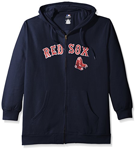 MLBボストンレッドソックスWomen 's Team Full Zip Fleece Hoodie with Distress Word Mark on Chest、4 x、ネイビー