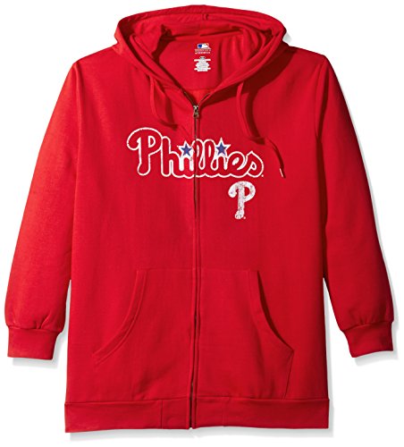 MLB Philadelphia Phillies Women 's Team Full Zip Fleece Hoodie with Distress Word Mark on Chest、1 x、レッド