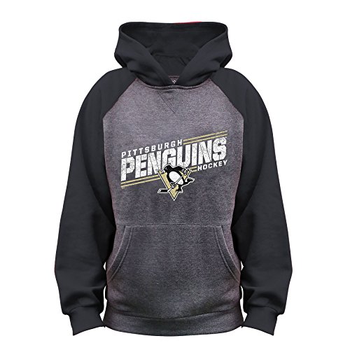 NHL Pittsburgh Penguinsユニセックスフレンチテリーラグランフード、チャコール/ブラック、Xラージ