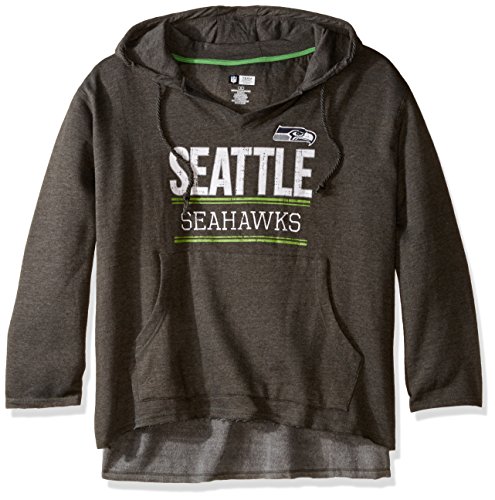 NFLシアトルシーホークスVノッチプルオーバーフードwith raggedエッジ、2 x、チャコール/ヘザー