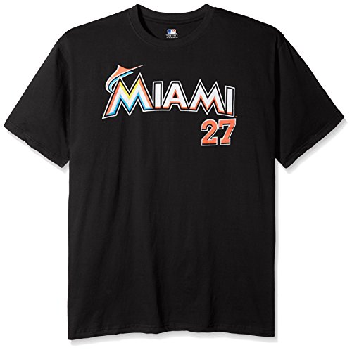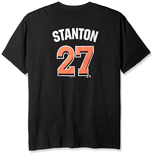 MLB Miami Marlins Stanton # 27メンズShort Sleeved Two Sided高密度名番号ティー、2 x /トール、ブラック