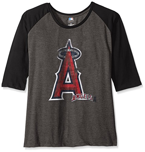 MLB Los Angeles Angelsレディース3 / 4スリーブラグランTシャツwith Distressロゴ、3 x、チャコール/ブラック