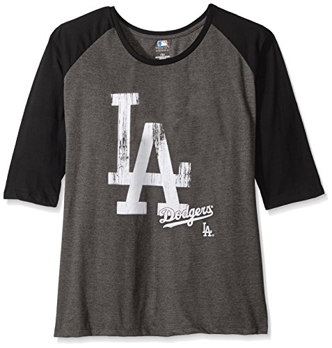 MLB Los Angeles Dodgersレディース3 / 4 SleevedラグランTシャツwith Distressロゴ、1 x、チャコール/ブラック