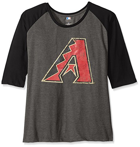 MLB Arizona Diamondbacksレディース3 / 4 SleevedラグランTシャツwith Distressロゴ、1 x、チャコール/ブラック