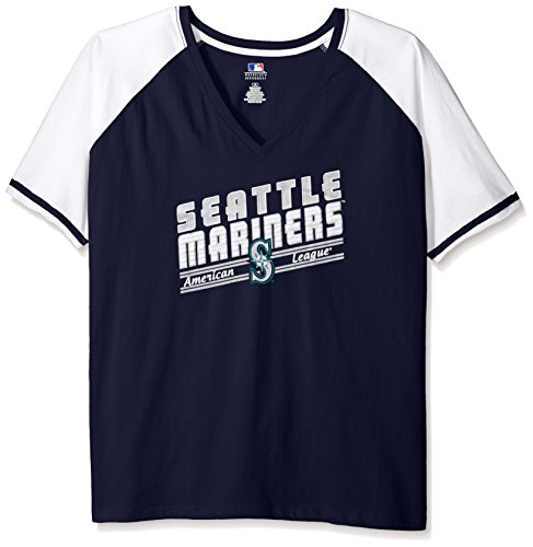 MLB Seattle Marinersレディースチーム半袖ラグランTシャツと腕ストライプ、3 x、ネイビー/ホワイト