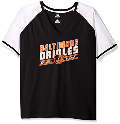 MLB Baltimore Oriolesレディースチーム半袖ラグランTシャツと腕ストライプ、2 x、ブラック/ホワイト