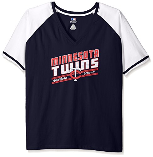 MLB Minnesota Twinsレディースチーム半袖ラグランTシャツと腕ストライプ、1 x、ネイビー/ホワイト
