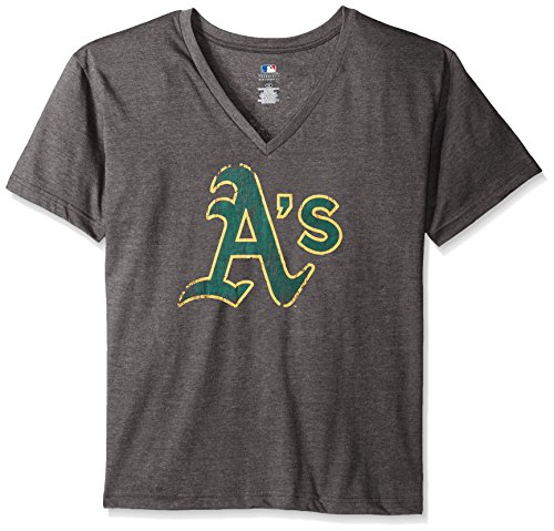 MLB Oakland Athletics女性用チーム半袖VネックTシャツロゴ、3 x、チャコール/ヘザー