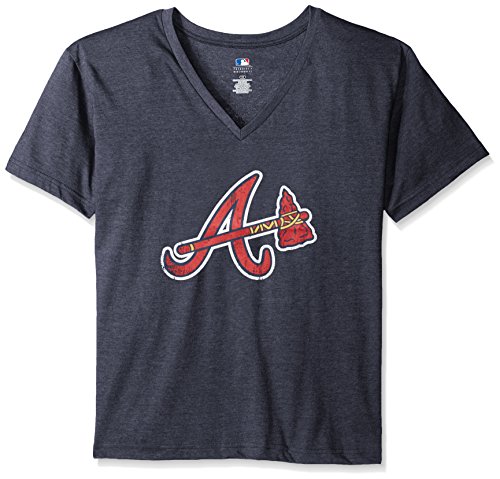 MLB Atlanta Braves女性用チーム半袖VネックTシャツロゴ、2 x、ネイビー/ヘザー