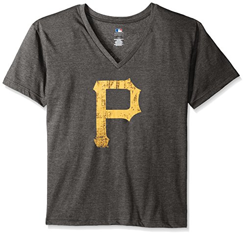MLB Pittsburgh Pirates女性用チーム半袖VネックTシャツロゴ、4 x、チャコール/ヘザー