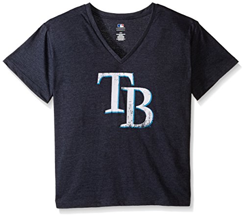 MLB Tampa Bay Rays女性用チーム半袖VネックTシャツロゴ、4 x、ネイビー/ヘザー