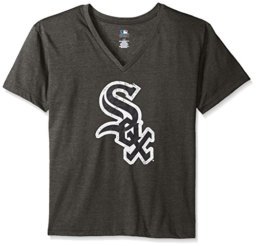 MLBシカゴホワイトソックス女性用チーム半袖VネックTシャツロゴ、3 x、チャコール/ヘザー