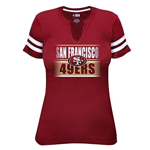 NFL San Francisco 49ers Short Sleeve Notchと腕ストライプTシャツ、1 x、レッド/ホワイト