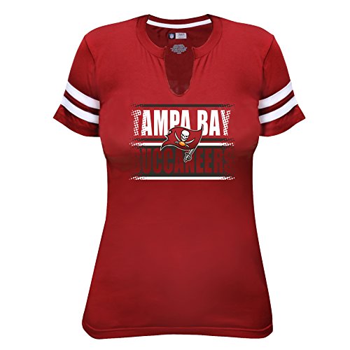 NFL Tampa Bay Buccaneers Short Sleeve Notchと腕ストライプTシャツ、4 x、レッド/ホワイト