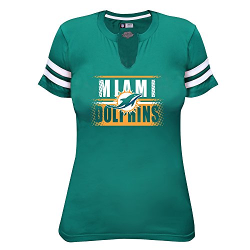NFL Miami Dolphins Short Sleeve Notchと腕ストライプTシャツ、4 x、アクア/ホワイト