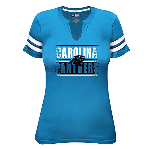 NFL Carolina Panthers Short Sleeve Notchと腕ストライプTシャツ、1 x、ブルー/ホワイト