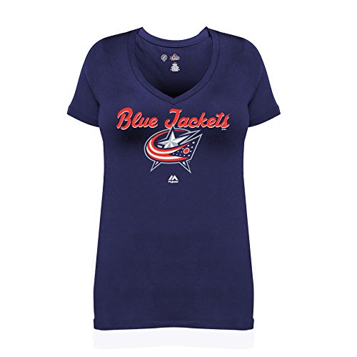 NHLコロンバス・ブルージャケッツ半袖VネックTシャツ、4 x、ネイビー