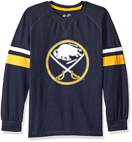 NHL Buffalo Sabres Long Sleeve Tee With Double Armストライプ、Large、ネイビー