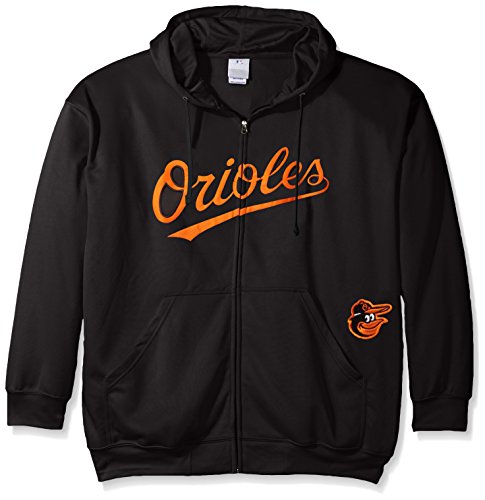MLB Baltimore OriolesメンズFull Zip Poly Fleece with Wordmark Chest withロゴnearポケット、4 x /トール、ブラック