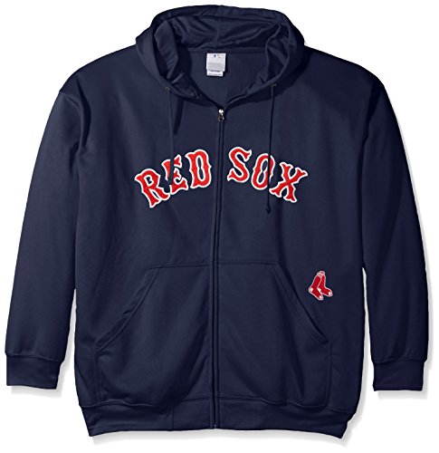 MLBボストンレッドソックスメンズFull Zip Poly Fleece with Wordmark Chest withロゴnearポケット、Xラージ/トール、海軍