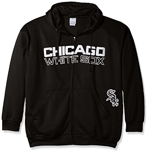 MLBシカゴホワイトソックスメンズFull Zip Poly Fleece with Wordmark Chest withロゴnearポケット、2 x /トール、ブラック