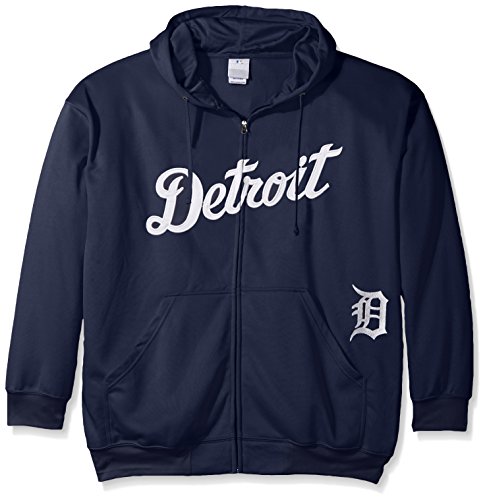 MLB Detroit TigersメンズFull Zip Poly Fleece with Wordmark Chest withロゴnearポケット、2 x / Tall、ネイビー