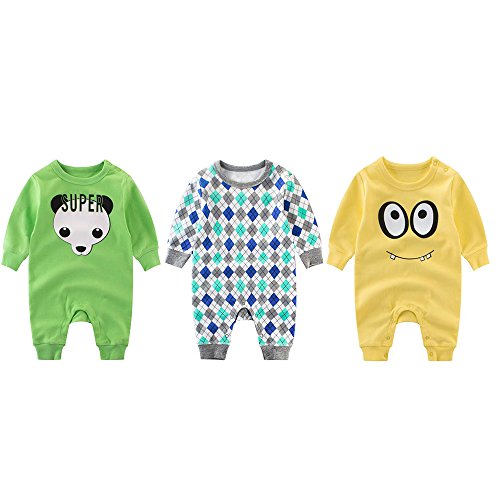 新生児 子供長袖 カバーオール 3枚セット 純綿 男の子&女の子 可愛いプリント 0~2歳 (66cm, セット4) [並行輸入品]