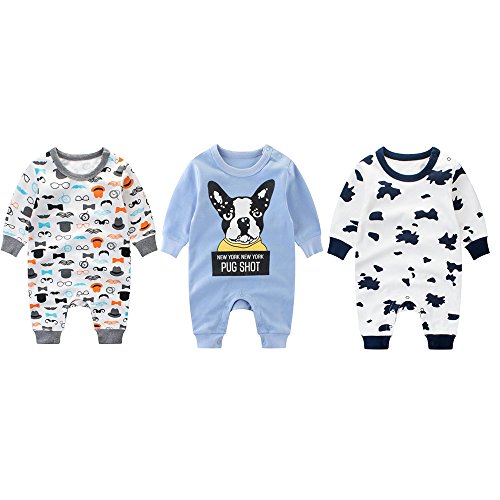 新生児 子供長袖 カバーオール 3枚セット 純綿 男の子&女の子 可愛いプリント 0~2歳 (59cm, セット6) [並行輸入品]