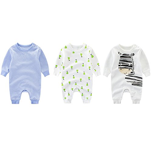 新生児 子供長袖 カバーオール 3枚セット 純綿 男の子&女の子 可愛いプリント 0~2歳 (73cm, セット9) [並行輸入品]