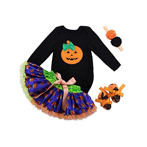 ANTETOKUPO ベビー服 ハロウィン 女の子 四点セット 0~24ヶ月 スカート ファーストシューズ (XL(12~4ヶ月), パープル) [並行輸入品]