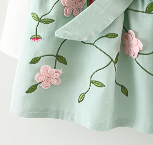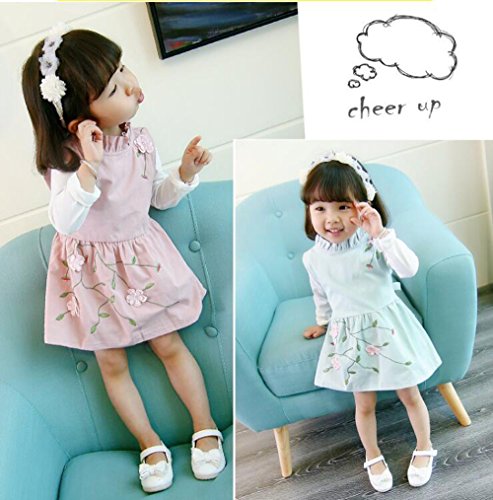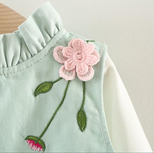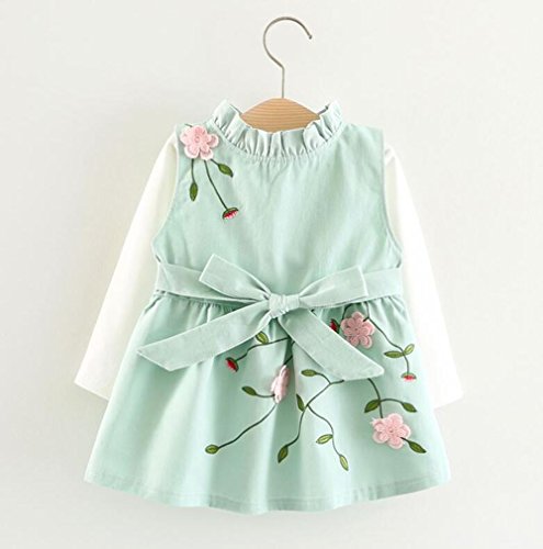 ANTETOKUPO ベビーワンピース 2点セット 長袖Tシャツ&無袖ワンピース 桜花 綿 入園式 70cm~100cm (100cm, 緑色) [並行輸入品]