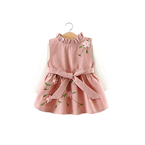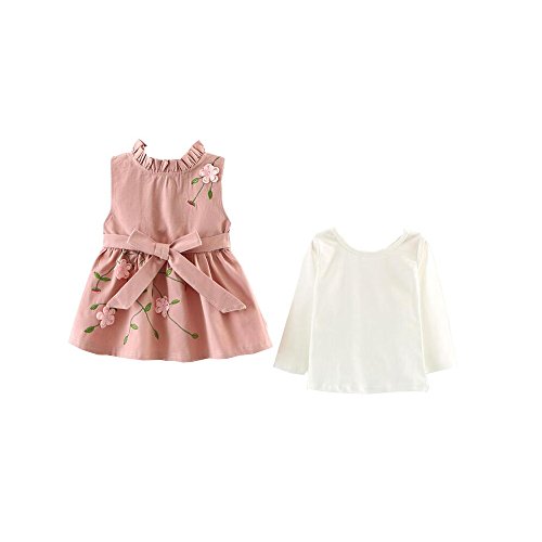 ANTETOKUPO ベビーワンピース 2点セット 長袖Tシャツ&無袖ワンピース 桜花 綿 入園式 70cm~100cm (90cm, 桜色) [並行輸入品]