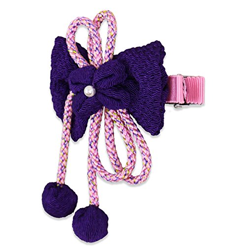 ベビー キッズ 子供用 髪飾り ヘアアクセサリー ちりめん クリップ 日本製 紫色 c911512102PU