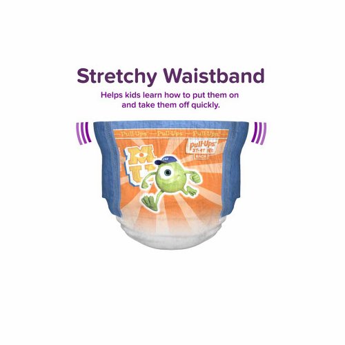 Pull-Ups training pants with new leg fit for all-around protection help teach potty training;Sides are stretchy for easy up and down like underwear, and open easily for quick changes;Disney graphics have wetness indicators that fade when wet;Zoned protection for maximum absorbency where boys need it most;Size 3T-4T fits toddlers from 32 to 40 lbs.