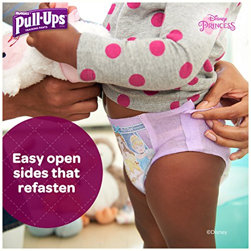 The most absorbent Pull-Ups training pant for added nighttime protection;Now better fit with more coverage and softer, stretchier sides;Underwear-like design to help teach her how to put them on and take them off;Easy open sides for quick and easy changes when you need it;Disney graphics featuring Cinderella that fade when wet to promote learning