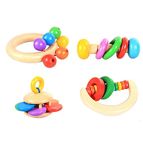 Pumpumly 赤ちゃんのおもちゃ 新生児 木製鈴を振る玩具 手の鳴らす鈴 音の出る玩具