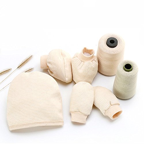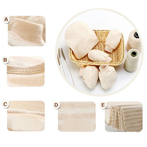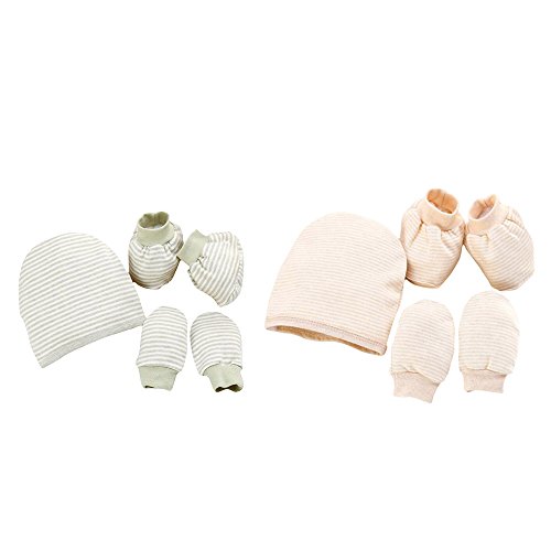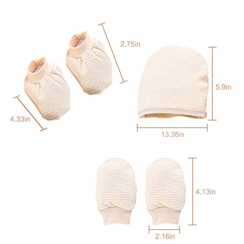 Pumpumly 新生児用 帽子、手袋とブーティのセット ベビー・出産祝い・ギフト カーキ ストライプ